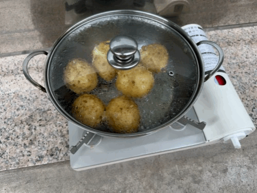 - 냄비를 흔들어 감자끼리 부딪히게 하기